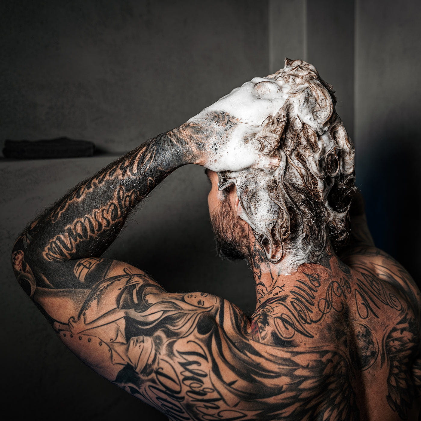 Każdy porządny szampon bazuje na mieszance substancji pieniących. W tym naszym dorzuciliśmy do nich dodatkowo węgiel aktywowany, czyli prawdziwego pogromcę brudu, który wyciągnie z włosów i skóry wszystkie zanieczyszczenia. A żeby włosy i skóra były nie tylko czystsze, ale ogólnie w lepszej formie, dorzuciliśmy jeszcze panthenol, glicerynę, kompleks minerałów, polyquaternium-7 oraz wyciąg z rośliny Inula Crithmoide. Czyli właściwą paszę.